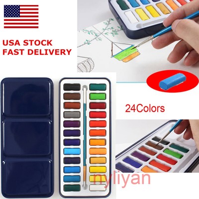Get The Best Price for 24 Colors Artist Solid Cake Watercolor Paint Set Illustration Art Painting.